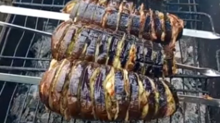 На углях не обязательно жарить только мясо. Предлагаем приготовить баклажаны с беконом. “Шашлычный” баклажан можно запечь на пикнике, но оно также может украсить праздничный стол. Ингредиенты: Рецепт приготовления: Приятного аппетита! Ждем Ваши оценки и комментарии!)))) Еще больше вкусных рецептов найдете на сайте Блюда на мангале.