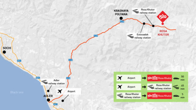 Также стоит учесть, что на вокзале Адлера и Красной Поляны — Роза Хутор есть остановки автобусов и такси, которые позволят вам добраться от вокзала до места назначения быстро и удобно.