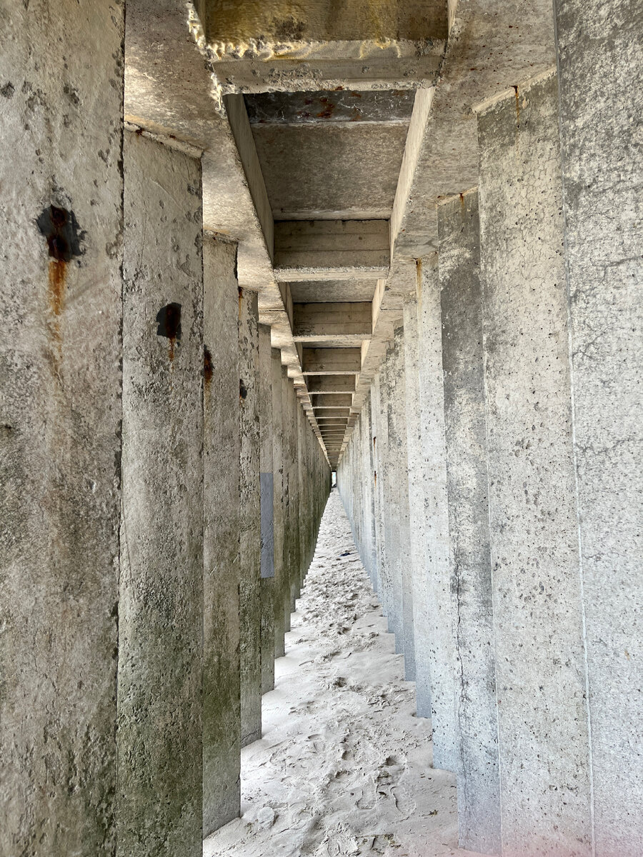 1. Оборотная сторона фешенебельного Кранца - железобетонная брутальность несущих конструкций променада над постепенно смываемым пляжем: