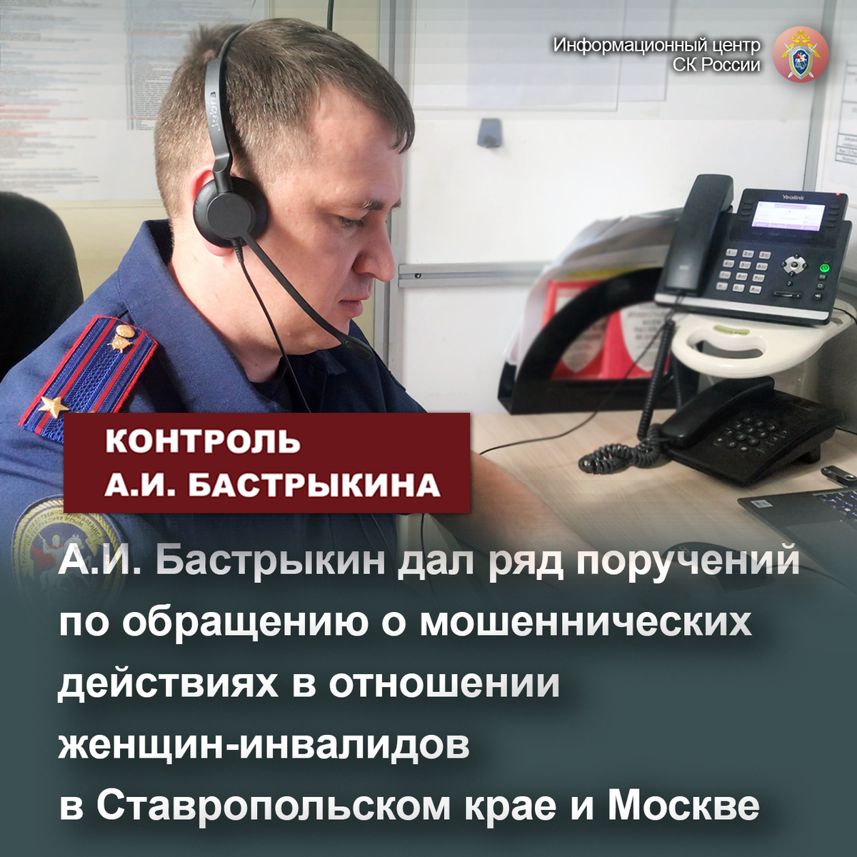 А.И. Бастрыкин дал ряд поручений по обращению о мошеннических действиях в отношении женщин-инвалидов в Ставропольском крае и Москве