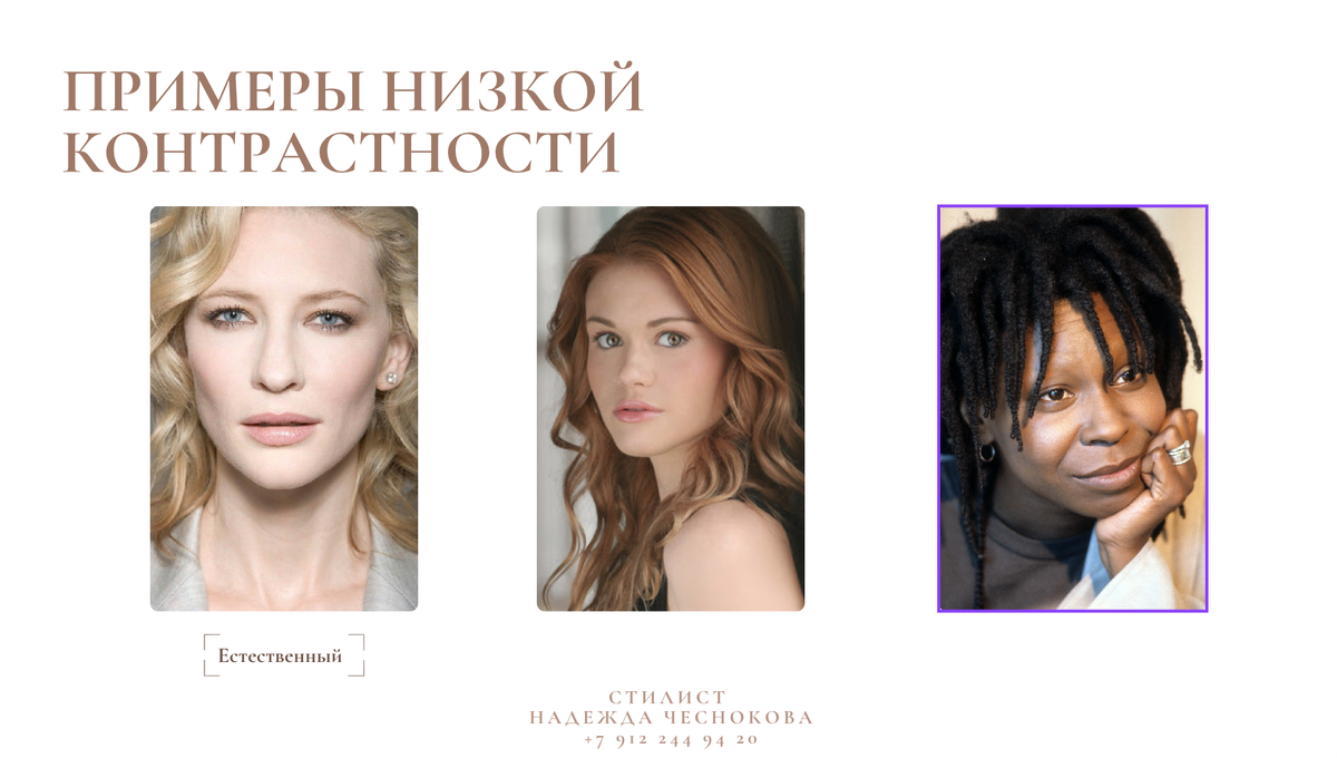 Оксюморон? Таки, нет! Это хитрый прием, который я успешно применяю к своим клиентам с низкой и средней контрастностью внешности. Непонятно? Сейчас расскажу и покажу на примерах. Нет, не клиентских, из интернета. Я своих клиентов нежно берегу и не показываю в интернете. Исключение составляют смелые клиенты-модели. Сначала немного матчасти. Люди бывают трех типов: низкоконтрастные, среднеконтрастные и высококонтрастные. Смысл в том, насколько отличаются друг от друга цвета кожи, волос, глаз и губ. Чем больше разница между цветом кожи, например, и цветом волос, тем выше контраст. Тут пока просто и, думаю, всё понятно. Когда контрастность внешности имеет значение? Когда мы, собирая вещи в комплекты, задаем контраст между цветами в одежде и контраст одежды с нами. И если мы не следуем своей природе (читай, уровню контрастности), то получается диссонанс. Или одежда нас заслоняет и нас за ней реально не видно, или она для нас слишком невнятная и мы выглядим плохо одетыми. Тут может быть и «