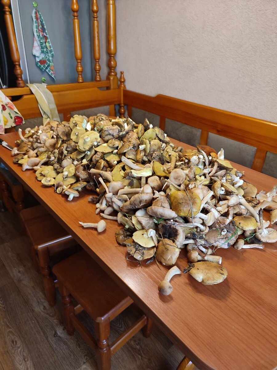 Короче, грибов, ребята, столько, сколько вам и не снилось. Всех не перережешь. Народу тоже много, но грибов хватает всем и ещё остаётся! В конце я резала уже от жадности. А их же ещё переработать надо.