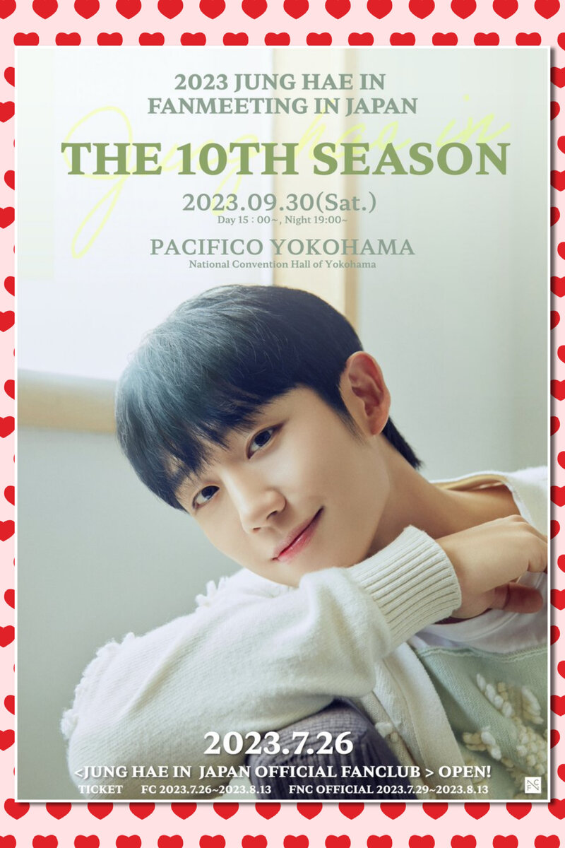 А ещё было решено, что в 10-ю годовщину его дебюта с 26 июля откроется «JAPAN OFFICIAL FANCLUB». Где можно будет делать предварительное бронирование билетов на мероприятия Чон Хэ Ина, а также получать информацию и контент, которые могут просматривать только члены фан клуба.