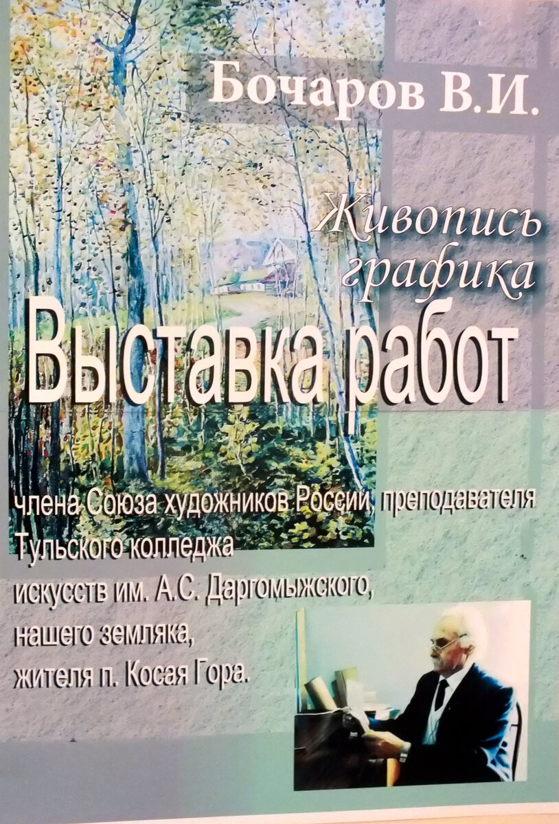 14 сентября 2023 года умер косогорский художник, член Союза художников России, преподаватель и наставник многих живописцев Валерий Иванович Бочаров. (1939 - 2023 гг) Любимыми местами мастера были Ясная Поляна, Крапивна, Белев и конечно окрестности его родного поселка Косая Гора. У Валерия Ивановича Бочарова было множество персональных выставок, первая прошла в далеком 1955 году. В феврале 2014 в ДК "Косогорец" состоялась одна из выставок живописца. Мне посчастливилось на ней насладится пейзажами Среднерусской возвышенности, увидеть красоты крымского Бахчисарая, соприкоснуться с природными и архитектурными красотами своей малой Родины. Фоторепортаж с выставки художника Бочарова Валерия Ивановича в Косогорском ДК, в феврале 2014 года. (все фото автора).