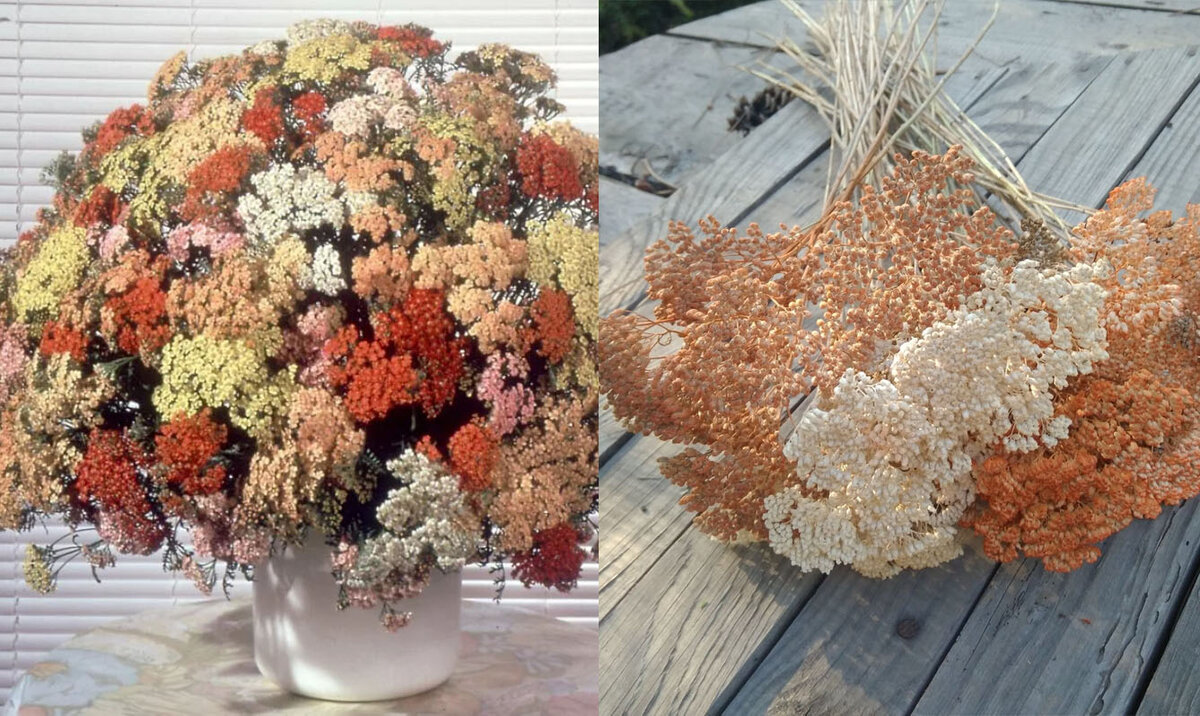 Тысячелистник – отличный вариант для малоуходного сада, беспроблемных долгоцветущих клумб, и замечательный сухоцвет. Он вроде и простенький, но хорош и в монобукетах (один то есть) и в составных с другими более крупными, и в сухоцветных букетах так же – и сам по себе хорош, и в сочетании с другими сухоцветами, например гомфреной, лавандой, кермеком, гелихризумом, всевозможными колосками.