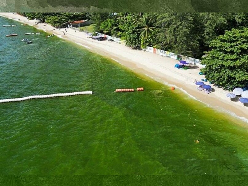 На днях в Паттайе туристы и местные жители стали свидетелями поразительного природного явления. В районе пляжа Вонгамат море окрасилось в насыщенный зелёный цвет, а вода приобрела характерный терпкий запах. Тем не менее, такое нестандартное состояние моря не отпугнуло людей, многие купались как обычно.