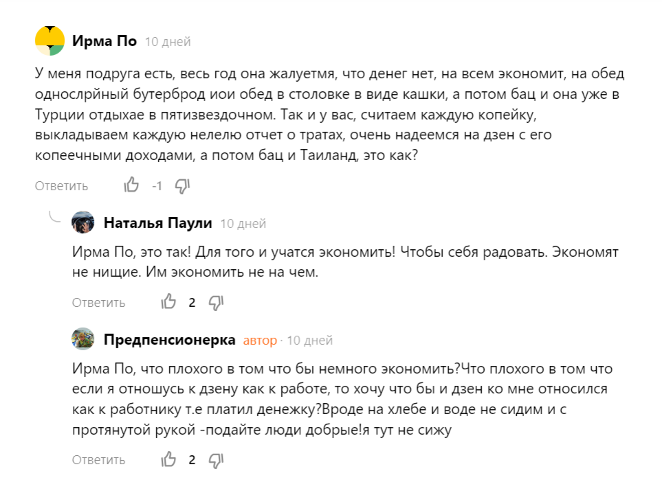 Коллеги по дзену предполагали, что мои публикации о путешествии в другую страну будут набирать бешеные дочитки. А, нет, людям не интересно. Хотя и рассказчик я так себе, скорее всего. Когда начала писать про поездку в Тайланд, много народа отписалось. Еще и комментариев много было не очень приятных. Я неоднократно подчеркивала, что мой канал не про экономию. Экономить я умею, но не люблю. Я люблю себя радовать. А радости у всех разные, один человек денежку в кубышку спрятал, другой на путешествие потратился, третья операцию омолаживающую сделала. Каждый заработанным распоряжается по своему усмотрению. Или вот еще: Ладно бы только в интернете это было, так ведь и в жизни бывает. Дружила с женщиной очень длительное время. Три года назад мы ездили в Турцию, я оттуда ей фотку отправила. Боже мой, как из нее полезло: — Что ты в меня своим благополучием тычешь? Люди последний овощ на букву х без соли доедают, а ты заграницу поехала!!! Много она мне всякого разного обидного сказала, не общаем