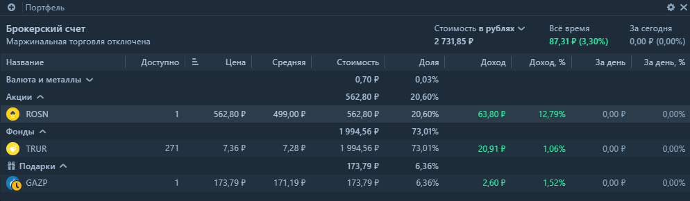 Здравствуйте мои дорогие подписчики и гости канала. Меня зовут Светлана. Сегодня я хочу рассказать вам о том как решила зарабатывать на инвестициях. Сначала объясню свою ситуацию. Я пенсионерка и получаю пенсию на банковскую карту, 50% которой сразу списывается судебными приставами. (Долг перед ними большой и выплачивать его мне ещё несколько лет.) Я сразу снимаю оставшуюся половину денег. Ведь, весь остаток списывается ими перед начислением следующей пенсии. Так что на карте оставлять деньги не получится. Пробовала копить наличкой, но всегда находятся веские причины потратить на что-либо. Тоже не вариант. Но мне хотелось накопить немного денег. Поэтому я решила открыть брокерский счёт и каждый месяц вносить на него 500-1 000 рублей. А ведь на нём можно немного заработать, поэтому я и начала зарабатывать. Пусть немного, но это лучше, чем ничего. А деньги то всё равно копятся и я в любое время могу их вывести со счёта. Только вот как-то уже не хочется их выводить. На прошлой неделе н