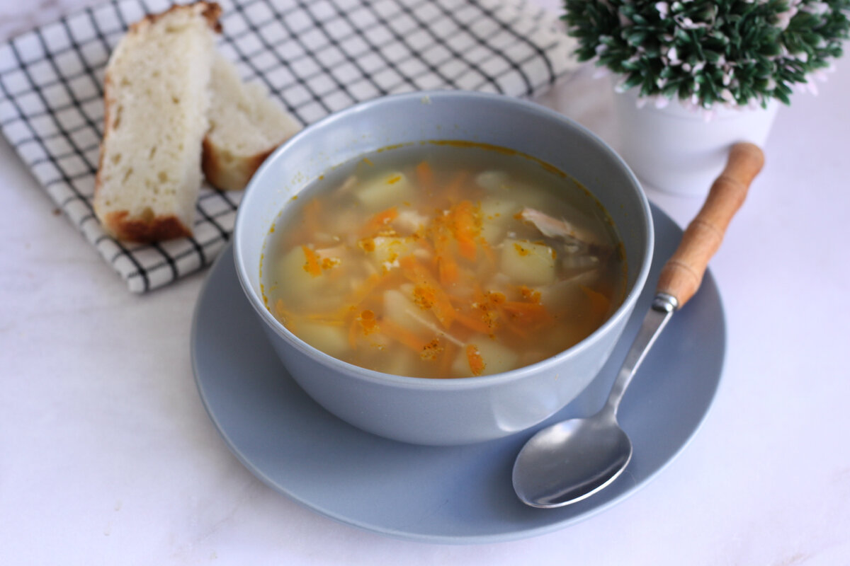 Этот суп - палочка-выручалочка, если нужно что-то быстро приготовить к обеду. В нашей семье его очень любят. Пишу классический вариант, но для сытости можно к нему добавить рис, пшено или немного вермишели. Ингредиенты на 2 литра воды. Лук мелко нарезать, морковь натереть на средней или крупной терке. Картофель нарезать кубиками. В кипящую воду выложить картофель, варить 10-15 минут.