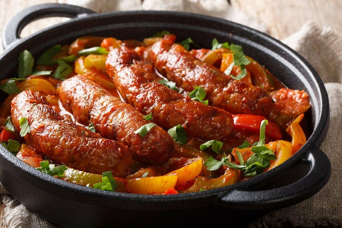 Готовим домашние колбаски с луком и сладким перцем на сковороде Колбаски с луком и сладким перцем жарят на обычной сковороде. Они хорошо держат форму если жарить их на шпажках.