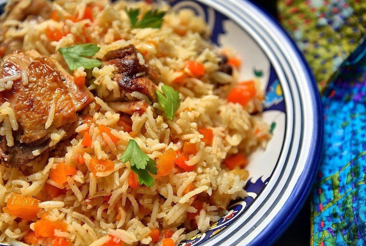 Продукты : 1. Курица – 500 г 2. Рис – 500 г 3. Морковь - 500 г 4. Чеснок – 1 головка 5. Лук репчатый – 1 шт. 6. Соль - по вкусу 7. Перец черный молотый - по вкусу 8. Зира – по вкусу 9. Приправа для плова - по вкусу 10. Масло растительное (жир) – 120 мл Нарежем мясо кусочками, примерно 2х2 см. Обжарим до золотистого цвета, на сильном огне, в разогретом масле. Добавим луковицу, порезанную на кубики. Обжарим вместе. Добавляем морковь, нарезанную соломкой. Уменьшаем огонь и тушим до мягкости. Добавляем специи и соль.