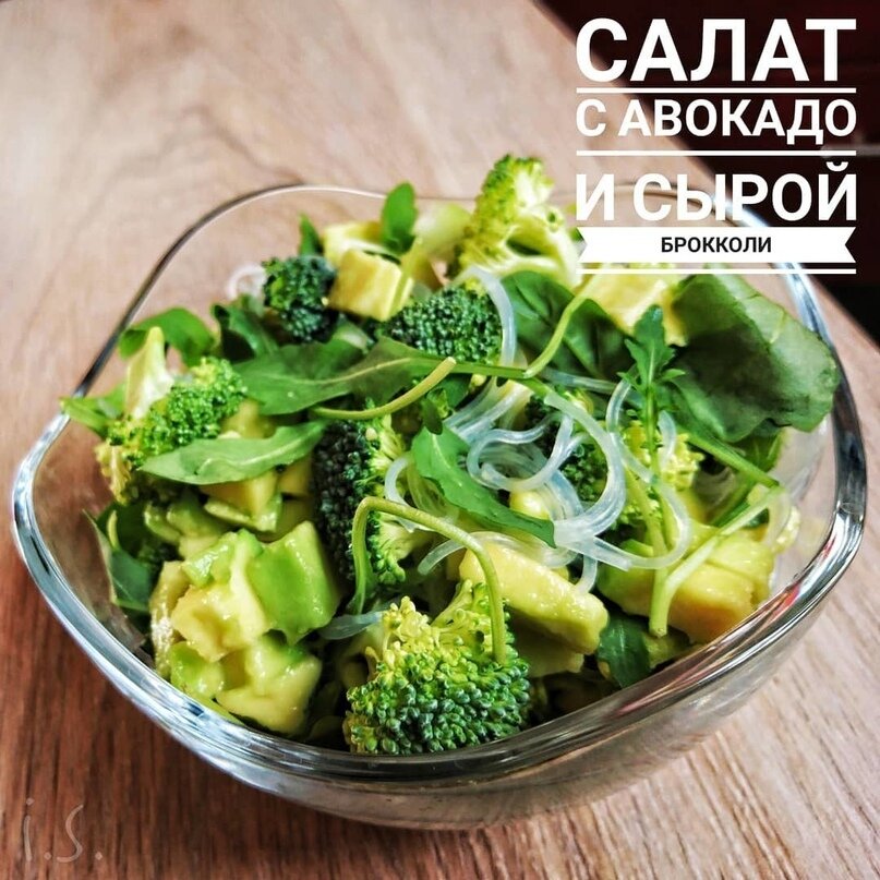 Ингредиенты: авокадо - 1 крупная шт. (~300 гр.) брокколи - 150 гр. огурец - 1 шт. (~100 гр.) фунчоза - 100 гр. руккола - 50 гр. сок лимона - 1 ч.л. соль, специи по вкусу. Заправка: масло оливковое - 4 ч.л. мёд жидкий - 1 ч.л. сок лимона - 1 ч.л. Приготовление: Фунчозу приготовить согласно инструкции. Брокколи разобрать на маленькие соцветия, огурец и авокадо нарезать кубиками (авокадо перемешать с 1 ч.л. лимонного сока, чтоб не потемнел). Всё соединить и перемешать аккуратно. Ингредиенты для заправки соединить и перемешать. Салат полить соусом перед подачей. Приятного аппетита! Сохрани рецепт чтобы не потерять .