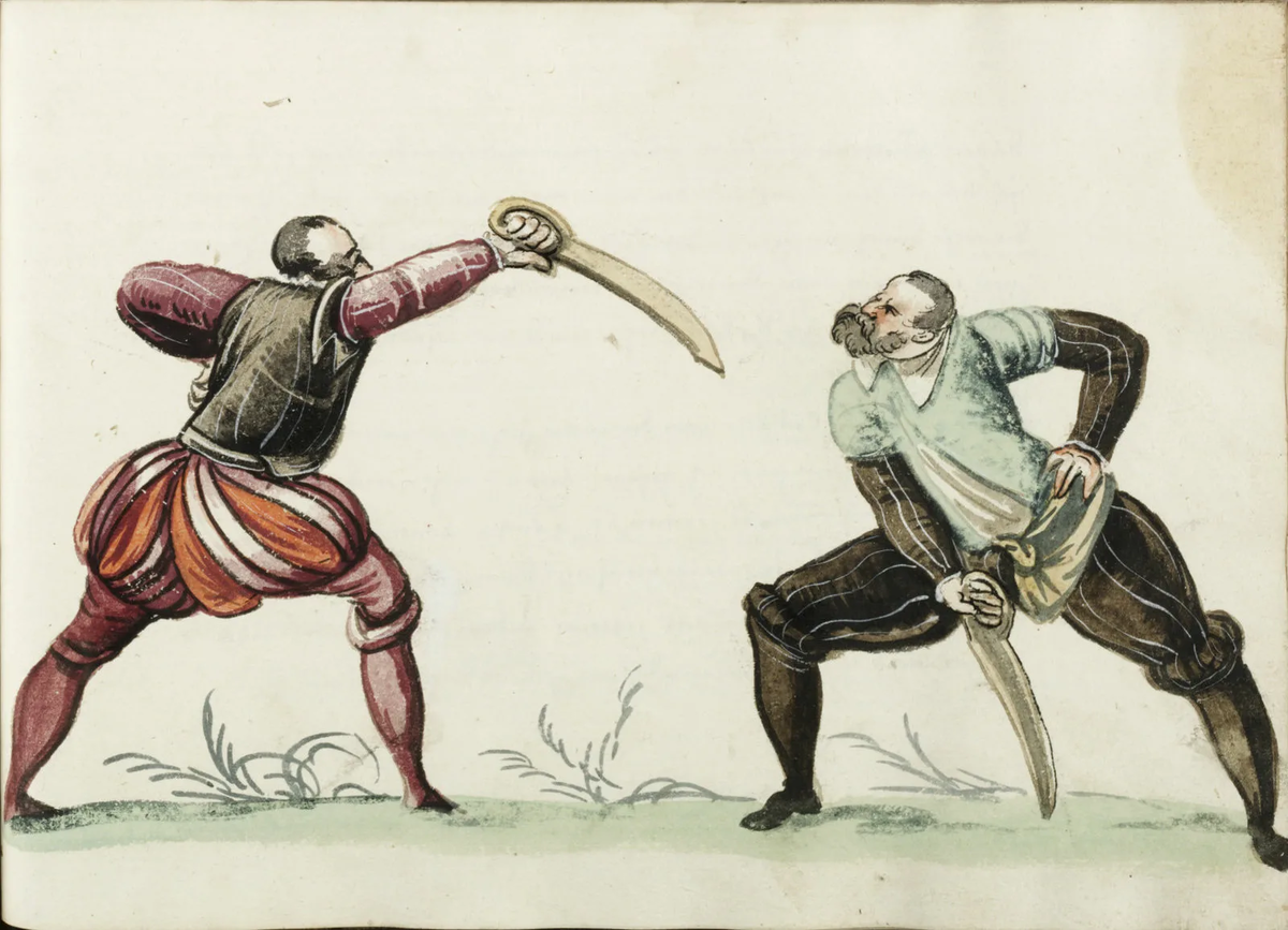 А вот Европа развивалась. Большинство фехтовальных школ преподавали нож не только как второе дополнительное оружие к длинной шпаге, но и самостоятельное ножевое фехтование. Достаточно опять же глянуть в испанские, итальянские или немецкие трактаты по фехтованию того времени. При этом активно используется имитационное тренировочное оружие.