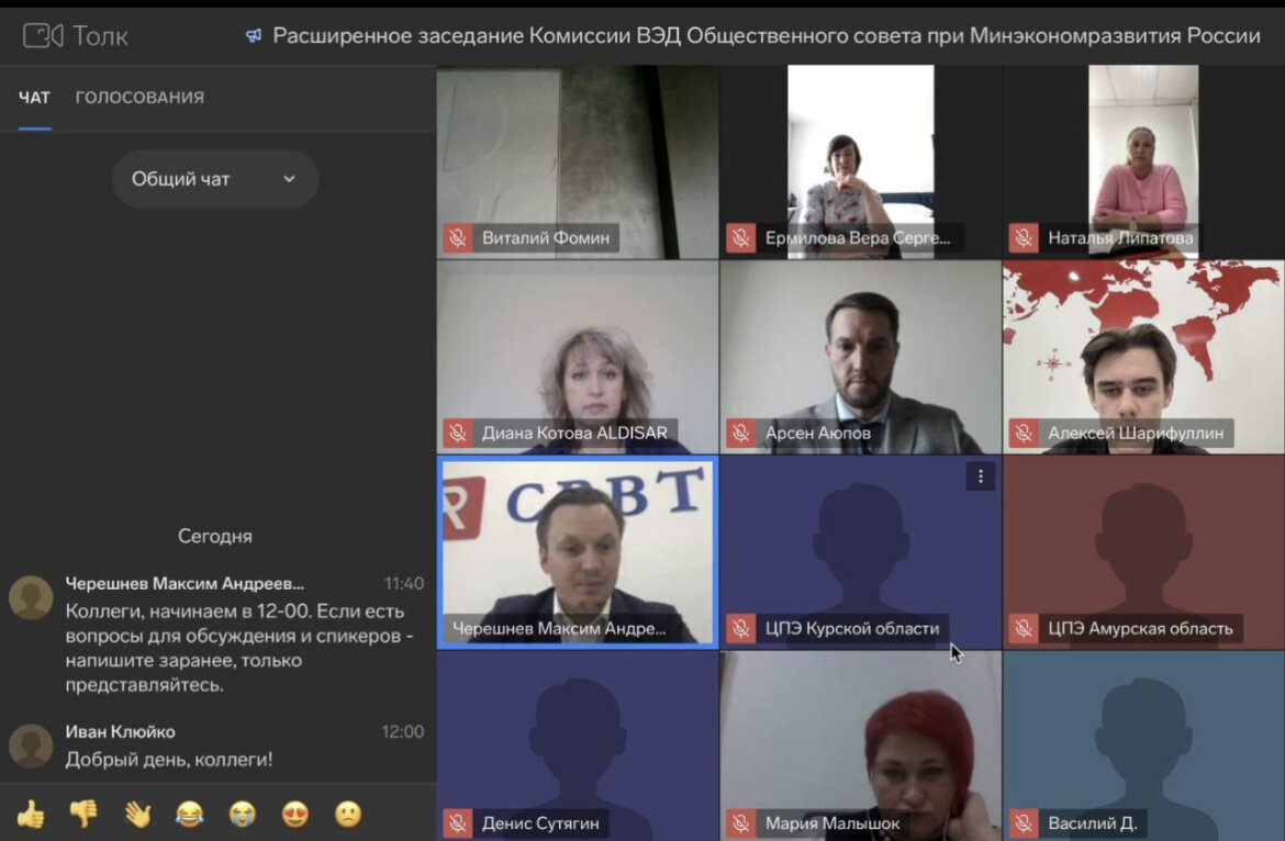 14 сентября в формате ВКС прошло расширенное заседание Комиссии ВЭД Общественного совета при Минэкономразвития России для экспортеров и импортеров с российскими компаниями-организаторами бизнес-миссий. На заседании с докладом выступила Генеральный директор Агентства бизнес коммуникаций Наталья Викторовна Липатова. Тема заседания: «Актуальные задачи ВЭД: бизнес-миссии как эффективный способ по освоению новых рынков». 👉🏻 Интерес проявили более 100 компаний, более 50 компаний смогли присутствовать на закрытом мероприятии в формате ВКС. Открыл заседание Председатель Комиссии Черешнев Максим Андреевич. В качестве спикеров выступили: — Малышок Мария Юрьевна, Руководитель онлайн-выставочного портала RUSSIA EXPO — Котова Диана Михайловна, Генеральный директор ООО "АЛДИСАР" — Ермилова Вера Сергеевна, Генеральный директор ООО "Дальэкспоцентр" — Шарифуллин Алексей Николаевич, Руководитель маркетплейса ВЭД «СРВТ.РФ» — Липатова Наталья Викторовна, Генеральный директор ООО "АБКгрупп" — Дей