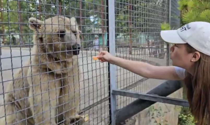 С русским медведем Алина смогла найти общий язык.