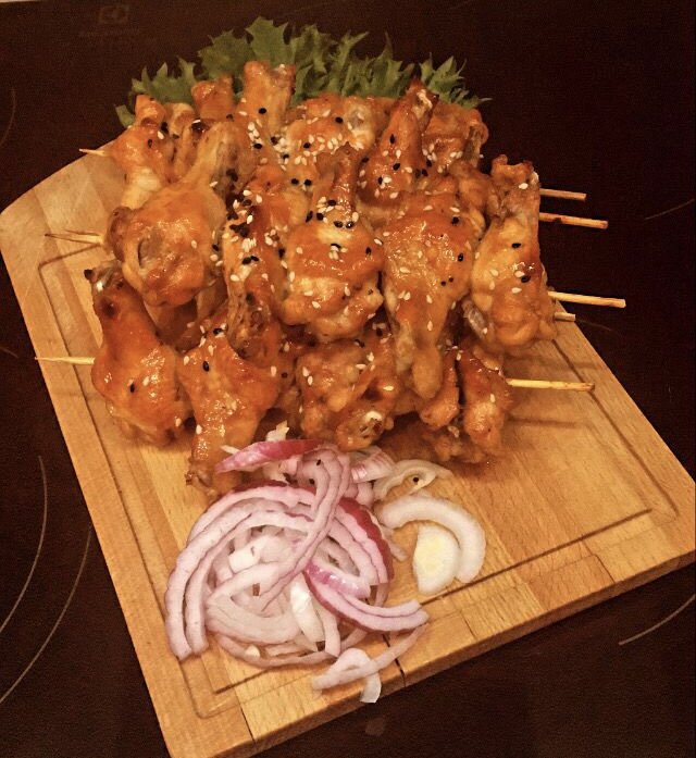 Сегодня решила готовить курицу. Можно взять любые части, кто что любит😊. Вымыть, высушить мясо и мариновать. Для маринада нам понадобится: Все ингредиенты соединить, мясо оставить в маринаде на 1 час, после чего нанизывать на мокрые деревянные шпажки, отправить в разогретую на 200 градусов духовку на 20-25 минут. Посыпать кунжутом и подавать к столу необычайно вкусную курятину. Легкая кислинка в сочетании со сладкими нотами придаст курице оригинальность и приятный вкус. Попробуйте и вы мои дорогие. Наслаждайтесь , приятного аппетита!