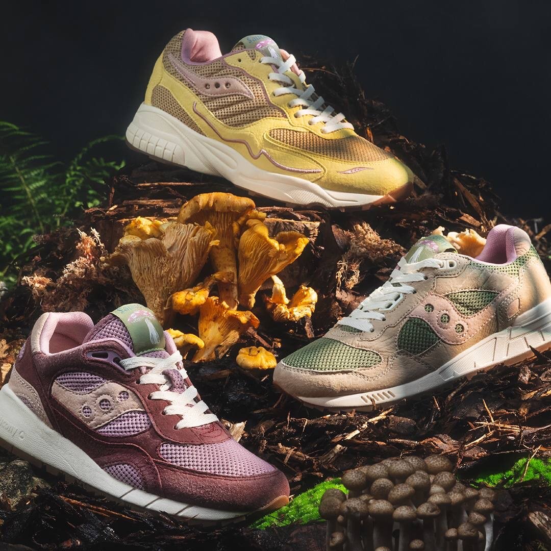 Материалы из грибов заслуженно стали трендом в области высокой моды. Компания Saucony Originals решила внести свой вклад в популяризацию грибной моды и представила три модели фирменных кроссовок сезона Весна/Лето 2023, изготовленные из кожи, полученной из грибов. Взяв за основу кроссовки 3D GRID Hurricane, Shadow 5000 и Shadow 6000, компания использовала материал Hyphalite, на 95% состоящий из грибов. Создатели коллекции подчеркивают, что «экосознание» не должно идти на компромисс со стилем, поэтому обувь представлена в разнообразных цветовых решениях. Для 3D GRID Hurricane производители подобрали смелую палитру «Tan/Light Yellow» с вкраплениями светло-розового и бледно-зеленого. Модель представлена из материала на основе грибной кожи, внутри пробковая стелька, шнурки изготовлены из переработанных материалов, а язычок украшен логотипом в форме гриба. Кроссовки Shadow 5000 представлены в цветовой гамме «Tan/Olive», которая идеально подходит для круглогодичного использования. Они также