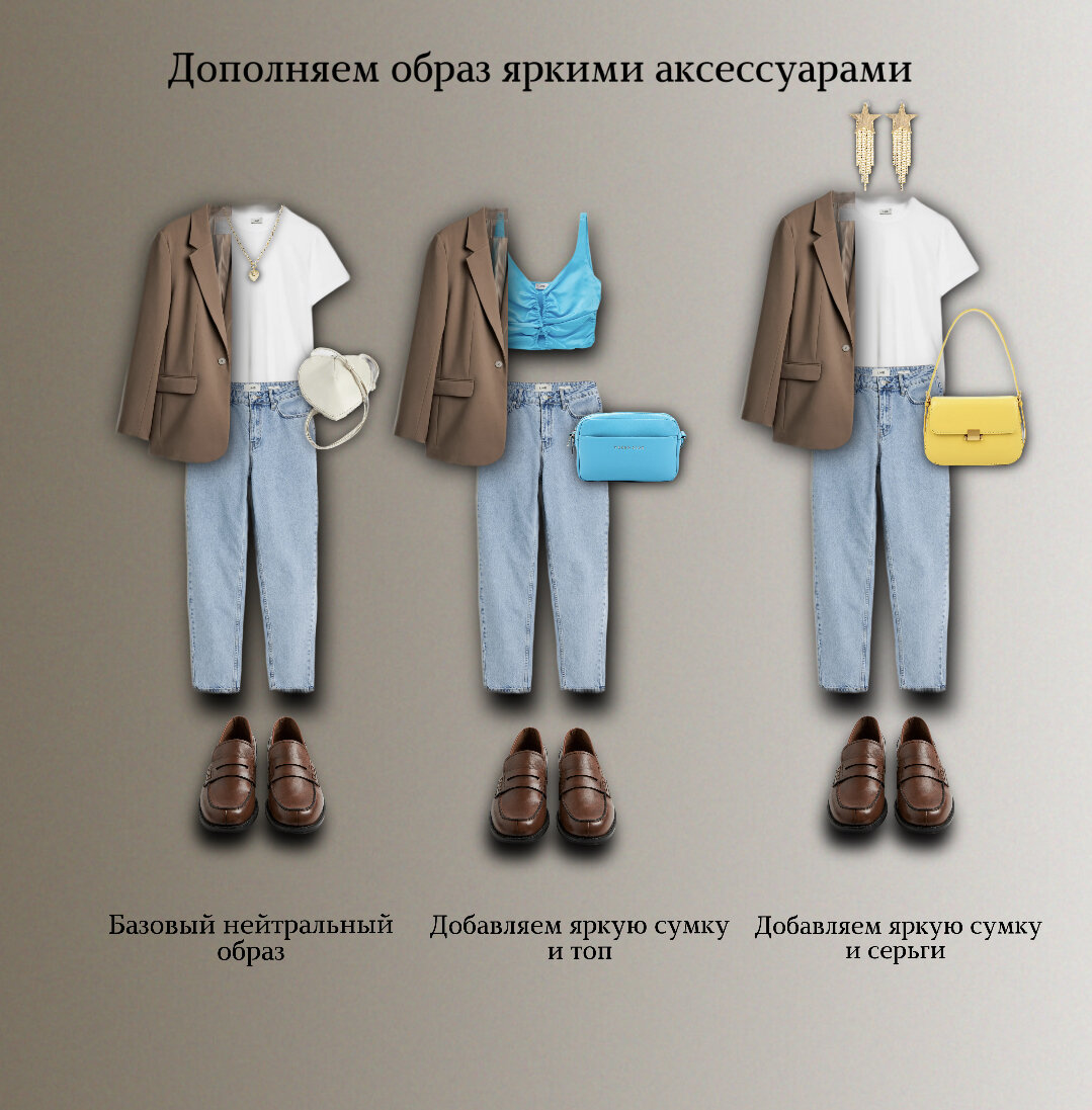 Дополняем образы аксессуарами, принтом, яркими вещами