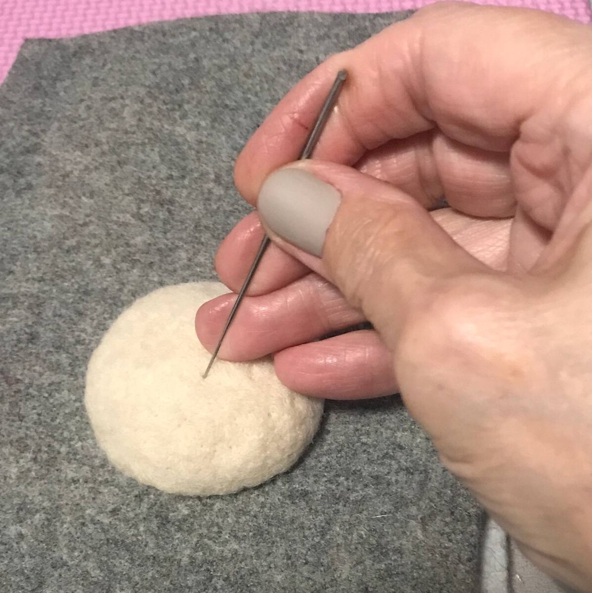 Самый первый раз, когда я взяла иглу в руки, был 2015 год. Тогда я вязала, много... Очень много. Вязала что-то из одежды, вязала коврики, вязала игрушки. И самой первой работой в валянии у меня был нос медведя. Медведь был набит внутри синтепоном, и я усердно лупила иглой по этой жутко плотной голове из синтетики и вискозной пряжи. Правда, иглы были японские. Мне их великодушно отдала Оля ( мой наставник в мокром валянии). Это я позже узнала, что они были японские. Но даже, тогда, каким-то, седьмым или десятым фибром, я знала, что нос должен быть очень плотным. Мне сразу понравился этот хрустящий звук, процесс некой медитации, отстраненности от забот и мыслей. Движение руки привычно находило верное направление. Не поверите, я наслаждалась! Вторым был цыпленок. Я видела фото свалянного птенца, как там лапы должны были валятся, понятия не имела. Но, цыпа тоже получился очень плотным. Для чего я так долго об этом говорю? Чтобы сказать девушкам, которые захотят посвятить себя этому душе