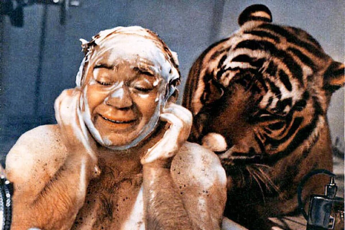 Во время съемок фильма "Полосатый рейс" произошел курьезный случай с Евгением Леоновым,исполнявшим роль лже-дрессировщика. Съемки проходили на пароходе "Матрос Железняк". Поскольку в фильме принимали участие тигры,их регулярно выпускали из клеток,чтоб они привыкли к новому месту. Леонов поставил условия,что сниматься он будет только в том случае,если он будет отгорожен пуленепробиваемым стеклом. Ванна,в которой он снимался в одной из сцен была огорожена таким стеклом,причем актер самолично проверил стекло на прочность. Но когда было установлено освещение,оператор понял,что стекло будет бликовать, и зрители смогут догадаться обо всем. Тогда режиссер принял решение убрать стекло,но актера в известность не ставить. Но для страховки под ванну спрятали дрессировщика. И вот лежит Леонов в ванне,стекло незаметно убирают,выходит тигр,направляется прямиком к актеру и начинает его обнюхивать. Что было дальше видели все зрители. Актер ахнул,выскочил из ванны и побежал,оставляя за собой хлопья п