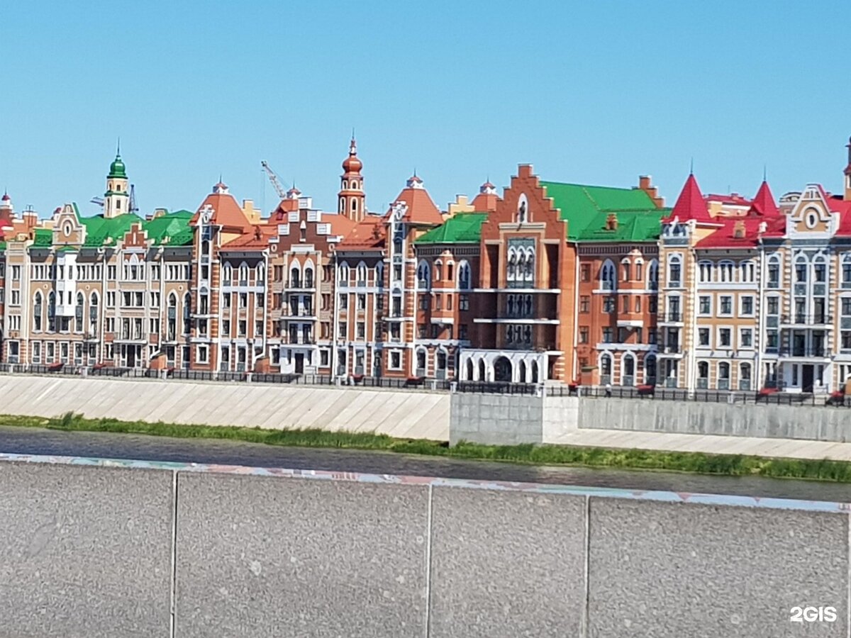 Набережная Брюгге, пожалуй, одно из самых красивых и необычных мест в Йошкар-Оле. Набережная названа так в связи с тем, что здесь расположены дома, построенные во фламандском стиле. Практически во всех зданиях здесь находятся различные учреждения — ведомства, министерства и прочие. Улица стала одной из самых популярных у йошкаролинцев и туристов. Отличное место для фотосессий! В первом здании находится центр искусств для одаренных детей. В новое помещение интернат переехал в 2013 году. Перед зданием установлен памятник Елизавете Петровне. Будущая императрица изображена девушкой. В остальных зданиях располагаются Министерство юстиции, Министерство здравоохранения, фонд обязательного медицинского страхования, фонд социальной защиты населения и другие государственные учреждения.