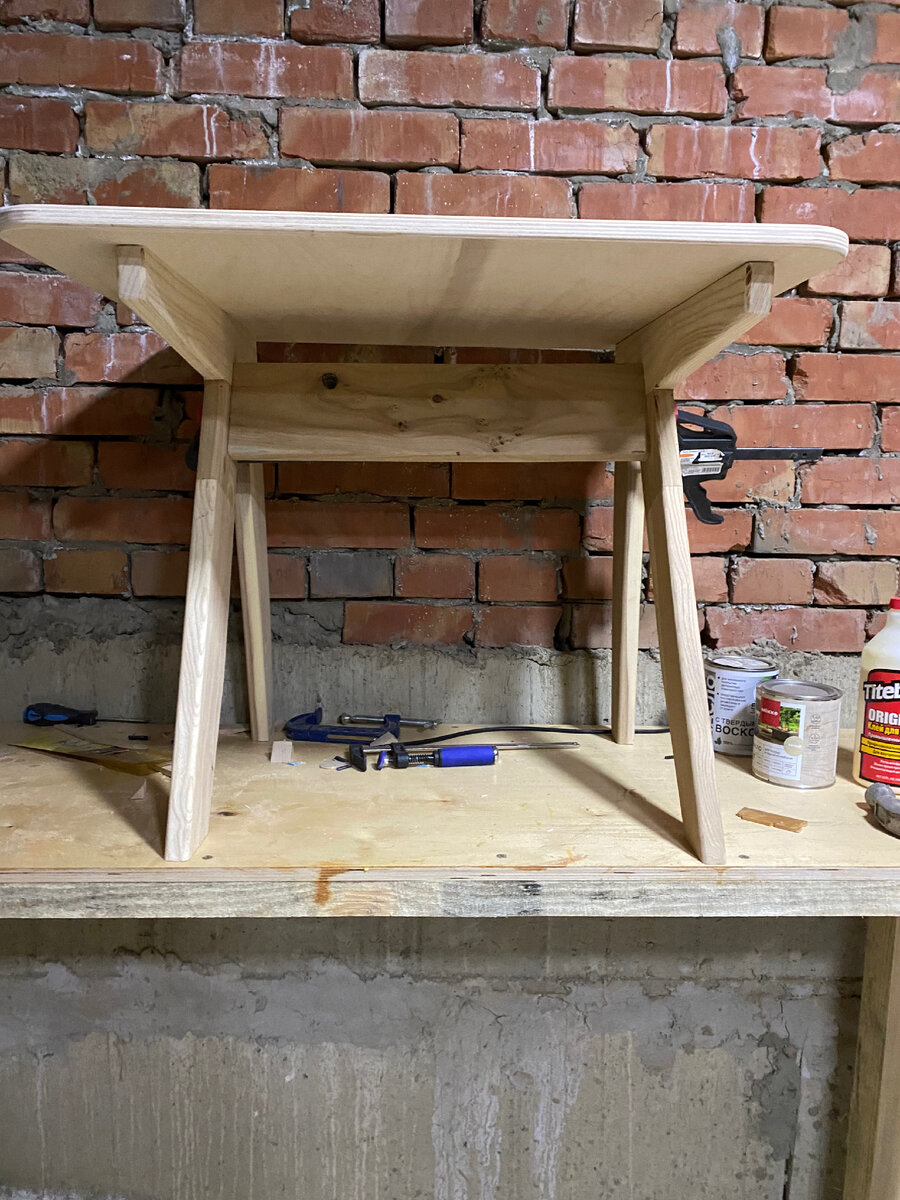Работаю над новым проектом, в данном случае это журнальный столик, небольшой, аккуратный столик. Ножки выполняются из бука, столешница для упрощения процесса будет из фанеры, что можно увидеть по фотографиям. Форма столика может напомнить вам советскую шальную парту, но это не точно. В целом столик получается аккуратным и необычным. В следующих постах вы сможете увидеть столик уже после покрытия маслом бука и пропитки для столешницы. Сможете угадать цвет?