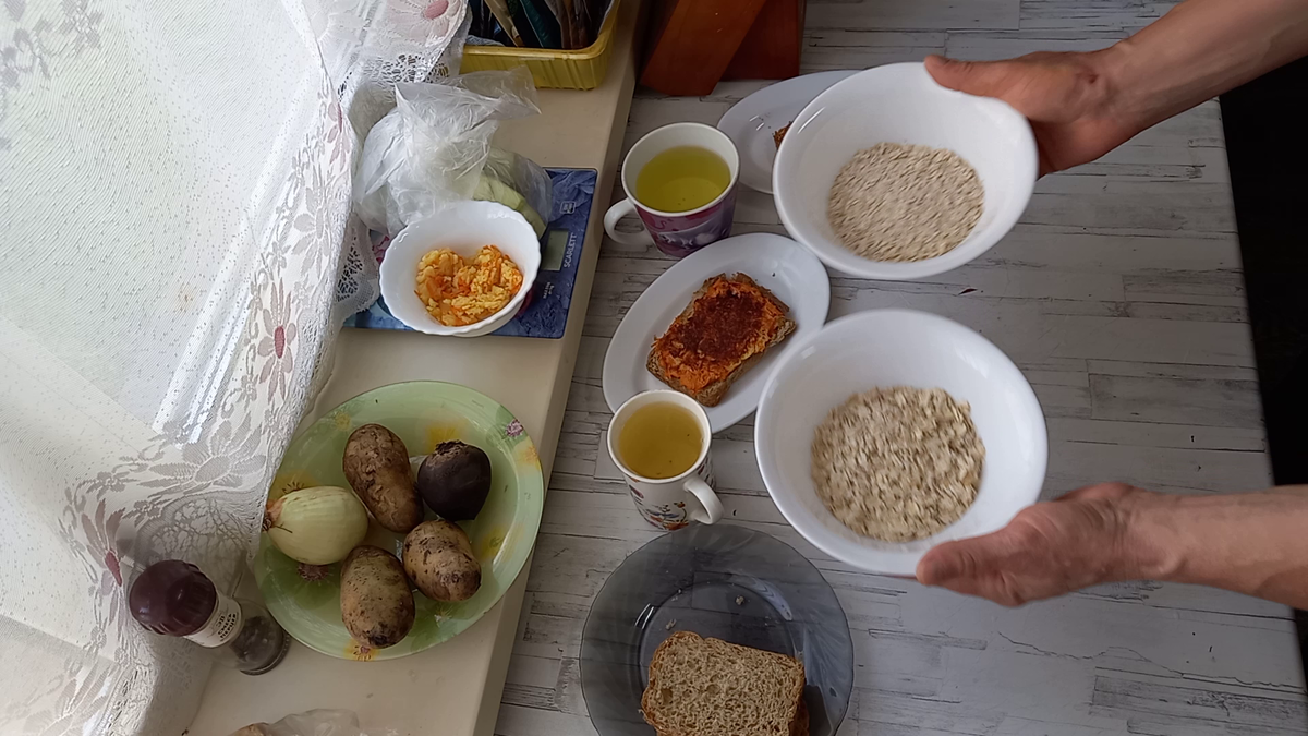 Всем привет. Меня зовут Ирина. И мы ведем проекты с моим сыном Денисом. У нас множество всяких выживаний как вдвоем, так и одиночных. И это один из экспериментов – можно ли прожить вдвоем на сто рублей с завтраком, обедом и ужином. Сразу скажу, что все наши проекты это больше хобби, чем средство заработка. Мы оба работаем, Денис еще и дополнительно учится, получает второе образование, которое сам захотел, и которое ему по интересам. Мы долго не выходили на связь, не было времени не только снимать, но и даже готовить самим себе. И вот наш очередной эксперимент. 100 рублей в день на двоих с полноценным меню. Итак, я купила: Капуста – 1,23 руб., Свекла – 2,12 руб., Морковь – 5,08 руб., Картофель – 11,42 руб., Рыба – 37 руб., Лук и хлеб на 21, 95 руб., Яйцо – 5, 40 руб., И две каши на 11, 50 руб. Итого – 95,70 руб. Еще даже и остались деньги))) Все цены указаны в видео, которое выпущено совместно с этой статьей. На завтрак у нас быстрая овсяная кашка И бутерброды на жареном хлебе с яйцом