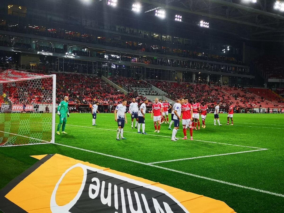 С первых минут красно-белые давили соперника. Отличный выход был у Александра Соболева, но судья даже не обратил внимания, что Сашу буквально тянули назад за футболку.