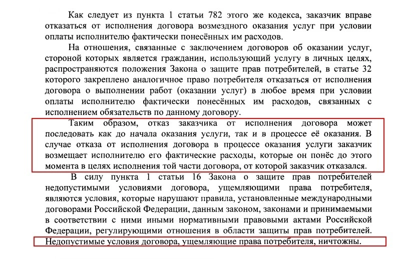 Верховный счëл условия договора недопустимыми, а дело отправил на пересмотр.