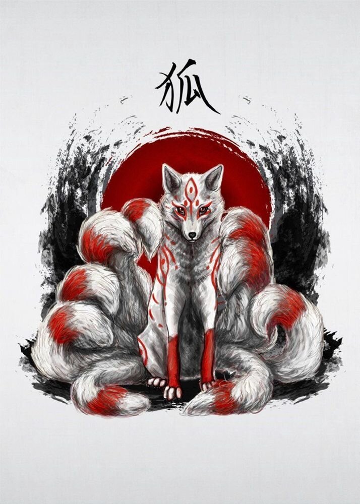Когда кицунэ получают девять хвостов, их мех становится серебристым, белым, или золотым. Эти кюби но кицунэ («девятихвостые лисы») получает силу бесконечной проницательности. Похожим образом в Корее говорится, что лис, прожившая тысячу лет, превращается в кумихо (дословно «девятихвостый лис»), но корейский лис как правило изображается злым, в отличие от японского лиса, который может быть как благожелательным, так и недоброжелательным. В китайском фольклоре также есть «лисьи духи» (хули-цзин), во многом схожие с кицунэ, включая возможность обладания девятью хвостами.