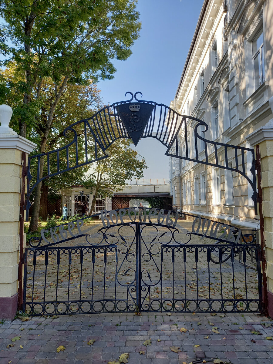 Напротив него через дорогу спрятался за оградой небольшой тенистый и уютный Сквер королевы Луизы.