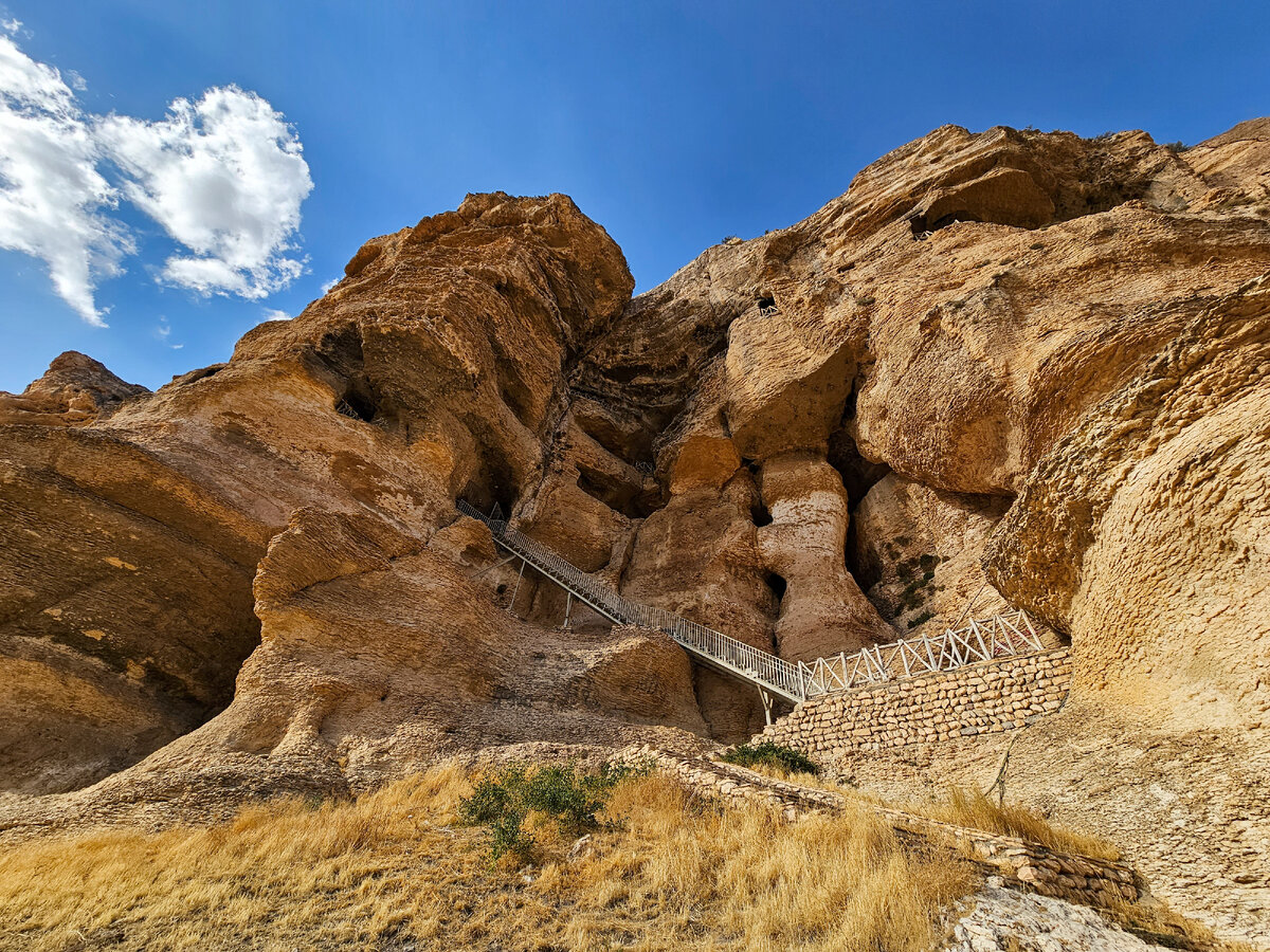Одна из ярких достопримечательностей Ирана, пещера Карафту, находится на Северо-Западе Ирана в провинции Курдистан, в 40 км от города Текаба и в 70 км от Дивандере. Пещеры Карафту - это не просто пещера, а целый их комплекс, подземный лабиринт. Помещения разместились в известковой скале в 4 этажа, соединяясь между собой коридорам и проходами. Иногда проходы совсем небольшие и приходится собираться в три погибели, чтобы пройти из одной пещеры в другую. Кстати, часть пещер имеют естественное происхождение, а часть вырезаны вручную. Историки считают, что она была населена людьми уже с 4-3 века до нашей эры. Сменяющие друг друга поколения оставляли здесь свои следы. Тут есть и наскальльная живопись и надписи на греческом и страрорусском языках. Надпись на греческом гласит: "ʿēraklēs [ʾenth]ade katoikei, mēthen eiselthoi kakon". "Здесь обитает Геракл, ничто злое не может проникнуть". Поэтому ещё эту пещеру называют храмом Геракла Надпись же на русском судя по памятной табличке о