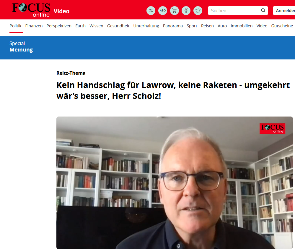 "Канцлер Германии Олаф Шольц и министр иностранных дел Анналена Бербок отказались пожать руку министру иностранных дел России Лаврову на саммите G20. Шеф-корреспондент FOCUS-online Ульрих Райтц не испытывает симпатии к такой "политике слабаков". Шольц и Бербок хотят показать, что русские - это аутсайдеры и что их надо отсечь, считает Райц. Это конечно демонстрация, но она ничего не даст. Русские просто будут искать других союзников. Шольц отказывается от рукопожатия и тем самым не соблюдает дипломатические обычаи. Таким образом, попытка Шольца и Бербок показать, что Россия изолирована, потерпела фиаско. Ведь отказ от рукопожатия - это нечто противоположное дипломатии. Суть дипломатии заключается в том, чтобы прийти к взаимопониманию с противниками и учитывать различные мнения".