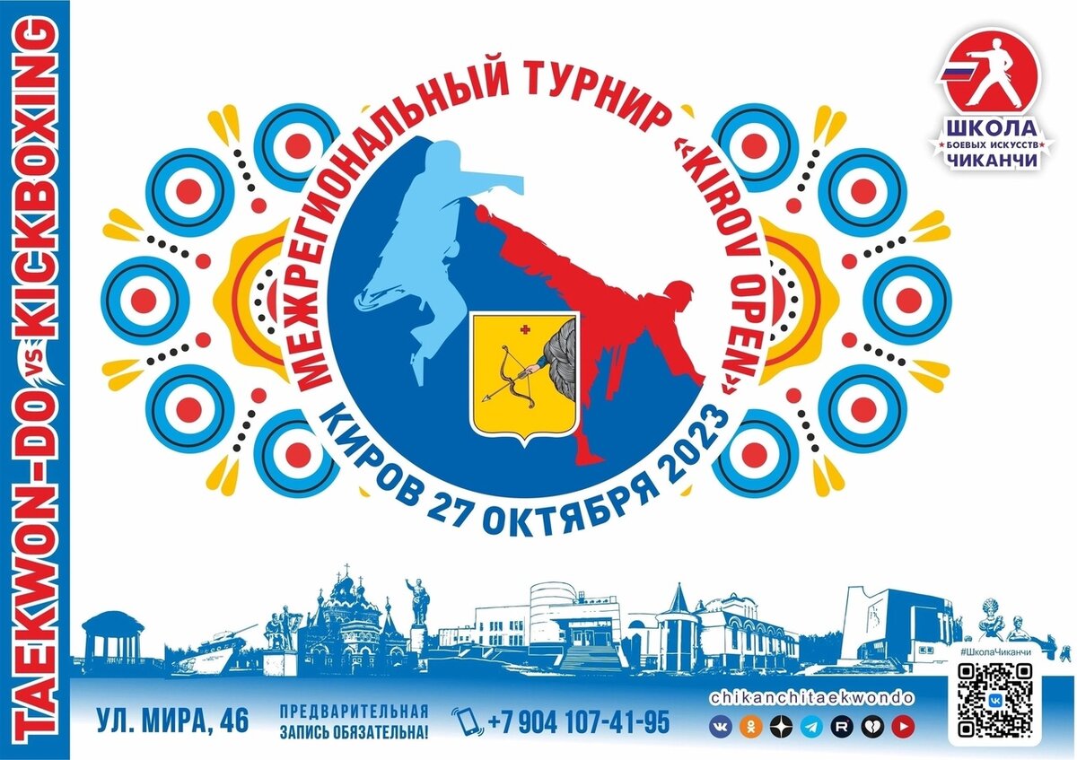 27 октября в Кирове пройдет ежегодный межрегиональный турнир «KIROV OPEN». Приглашаем всех заинтересованных спортсменов от 3-х лет и старше почувствовать соревновательный дух, окунуться в атмосферу здорового соперничества и стать героями ярких состязаний. А чтобы получить положительные эмоции медалиста турнира, участникам нужно будет преодолеть себя. Мощный заряд адреналина ждет родителей, мгновения гордости за своих детей гарантированы. Турнир проводит Школа боевых искусств Анатолия Чиканчи для спортсменов любой федерации тхэквондо и кикбоксинга. Прием заявок открыт до 24 октября включительно. 📞 Подробности по телефону: +7(912)702-42-30 Жмите «Лайк» и подписывайтесь на наш канал.