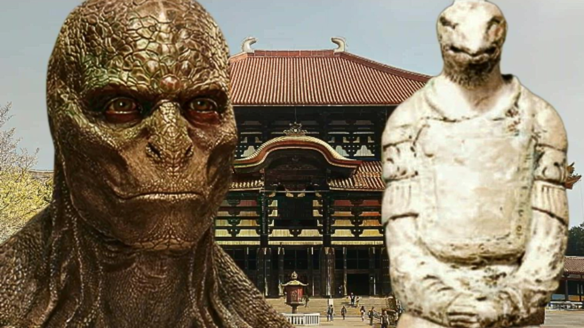 Храм Хорю-Дзи в японской префектуре Нара долгое время привлекал внимание своей необычной статуей, которая не так давно исчезла. Она изображала фигуру в сидячем положении, с явно ящероподобными чертами лица. По мнению некоторых исследователей, статуя являлась свидетельством существования культа рептилий в древней Японии. Любые находки такого типа всегда весьма интересны, а сам культ рептилий встречается во многих древних культурах всего мира (Ближний Восток, Африка, Европа и Мезоамерика). Начиная от таинственных артефактов, похожих на человекоподобных рептилий, которые были обнаружены археологами на раскопках Аль-Убайд в Ираке, до документально подтвержденного культа крокодилов в древнем Египте, также рассказов о пернатом змее, которому поклонялись майя и заканчивая рассказами о Славянском боге подземного царства Велесе. Трудно отрицать, что множество упоминаний о человекоподобный рептилиях должно заставить задуматься о реальном существовании такой древней расы на нашей планете. Также