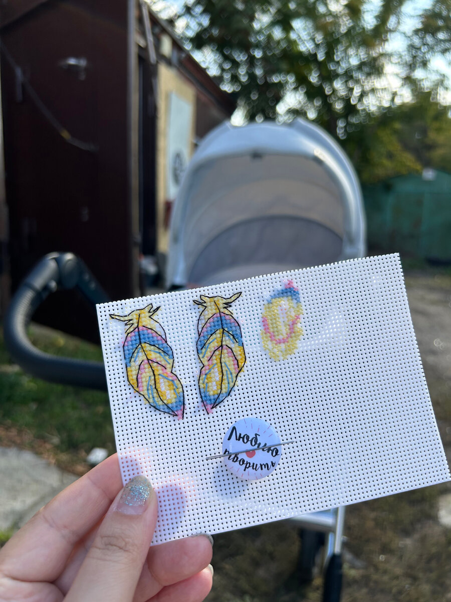 Сейчас вышиваю «перышки» и останется еще вышить «звездочки» и можно будет перейти к вырезанию и сшиванию всех частей воедино.