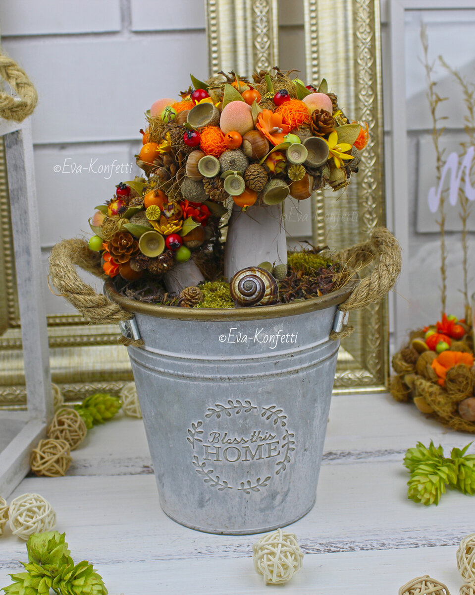 Всех приветствую!🤗 Делюсь с вами идеей осеннего декора. Покажу, как можно сделать декоративную композицию «Осенние грибы».🍄 Осенние грибы — декоративная композиция ЧТО ПОНАДОБИТСЯ: Вырезаем картонный круг. Далее из ткани вырезаем круг, немного больше по размеру, чем подготовили картонный кружок. Круг из ткани прошиваем по периметру нитками пунктирным швом. Немного стягиваем его и наполняем синтепоном. Затягиваем нитки и завязываем кончики на узел. Получается, мы подготовили грибную шпяпку. Переходим к созданию ножки. Ее можно вырезать из пенополистирола при помощи канцелярского ножа. Мне захотелось создать легкую фактуру, поэтому грибную ножку я покрыла шпатлевкой, а после просушки слегка затерла острые пики наждачной бумагой. В завершении покрасила белой краской. Шляпку приклеиваю к ножке. Ну и приступаю к самому интересному процессу — декорированию. Идея заключается в полном покрытии грибной шляпки различными материалами. Я использовала орешки фундука, мелкие шишки, коробочки мака,