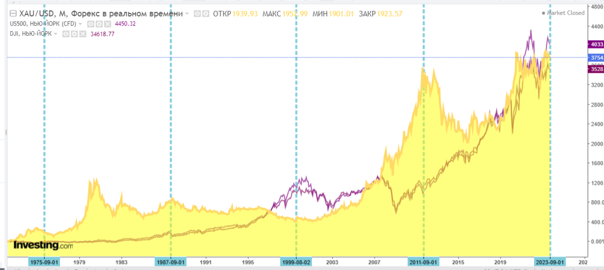 Ну а события 2011-2023гг нам и самим известны: бурное надувание пузыря в стоках и огромный 12-летний супербоковик в золоте: