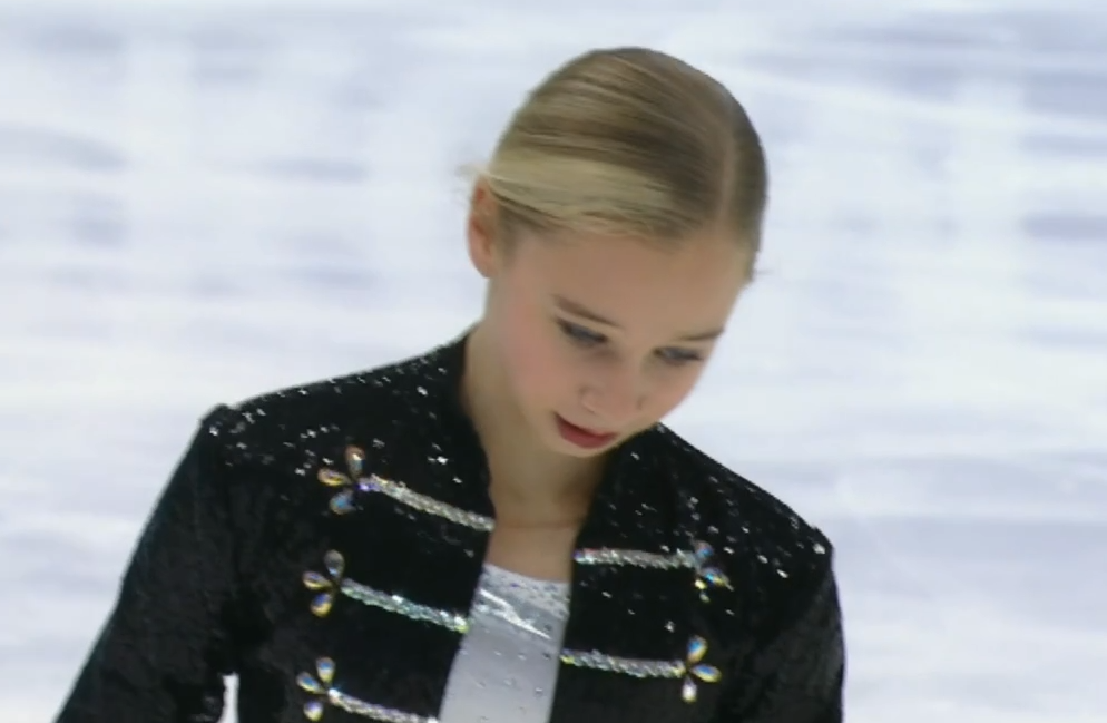 Начнем с того, что чемпионка России Софья Акатьева пропустила произвольную. Пока не готова вообще к ультра-си после травмы. Как видно. Но есть и радостные известия. Безумству храбрых поем мы славу, как писал великий пролетарский поэт. Вероника Жилина из команды Плющенко трижды заходила на четверные. Чисто выполнен первый тулуп-4 в каскаде с тулуп-2, затем два падения с попытки квадо-тулупа (получился двойной) и квадо-сальхова. Что расстроило, с одной стороны. Ведь при физических данных Вероники Жилиной надо бы научиться управлять нервами. Однако: никто, помимо великолепной Аделии Петросян и упомянутой Жилиной – не заходил за две программы даже на тройные аксели. До выступления Жилиной время текло уныло: плавное, медленное, слабо выразительное и похожее друг на друга катание представительниц разных школ – Туктамышевой, Муравьевой, Зининой. Тоже плавное, но с многими падениями и срывами катание Майи Хромых, которая возвращается в спорт после полутора лет отсутствия. (Кроме, справедливост