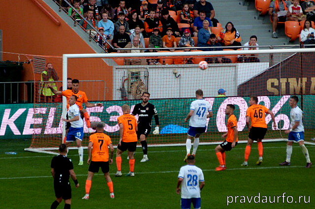 Футболисты «Урала» в матче 8-го тура чемпионата РПЛ принимали на «Екатеринбург-Арене» воронежский «Факел». Гости, к моменту начала игры занимавшие последнее место в таблице Премьер-лиги, смогли отобрать очки у «оранжево-черно-зеленых». На первых минутах заметно активнее выглядели воронежцы, несколько раз разыгравшие стандарты у ворот Ильи Помазуна. Впрочем, голкипер «Урала» сыграл спокойно и уверенно. Екатеринбуржцы свой первый острый момент создали на исходе четверти часа игры. Александр Юшин после передачи Андрея Егорычева пробил в дальний угол из пределов штрафной, однако вратарь «сине-белых» Александр Беленов смог отразить сложный удар. «Факел» ответил опасной атакой в середине тайма. Теперь уже Помазуну пришлось потрудиться, чтобы достать мяч, летевший в угол после удара Никиты Моцпана. Вторая половина тайма прошла в равной борьбе, но до острых моментов не доходило. Главным образом, соперники ограничивались подходами к штрафной, и нулевая ничья по итогам тайма стала закономерным и