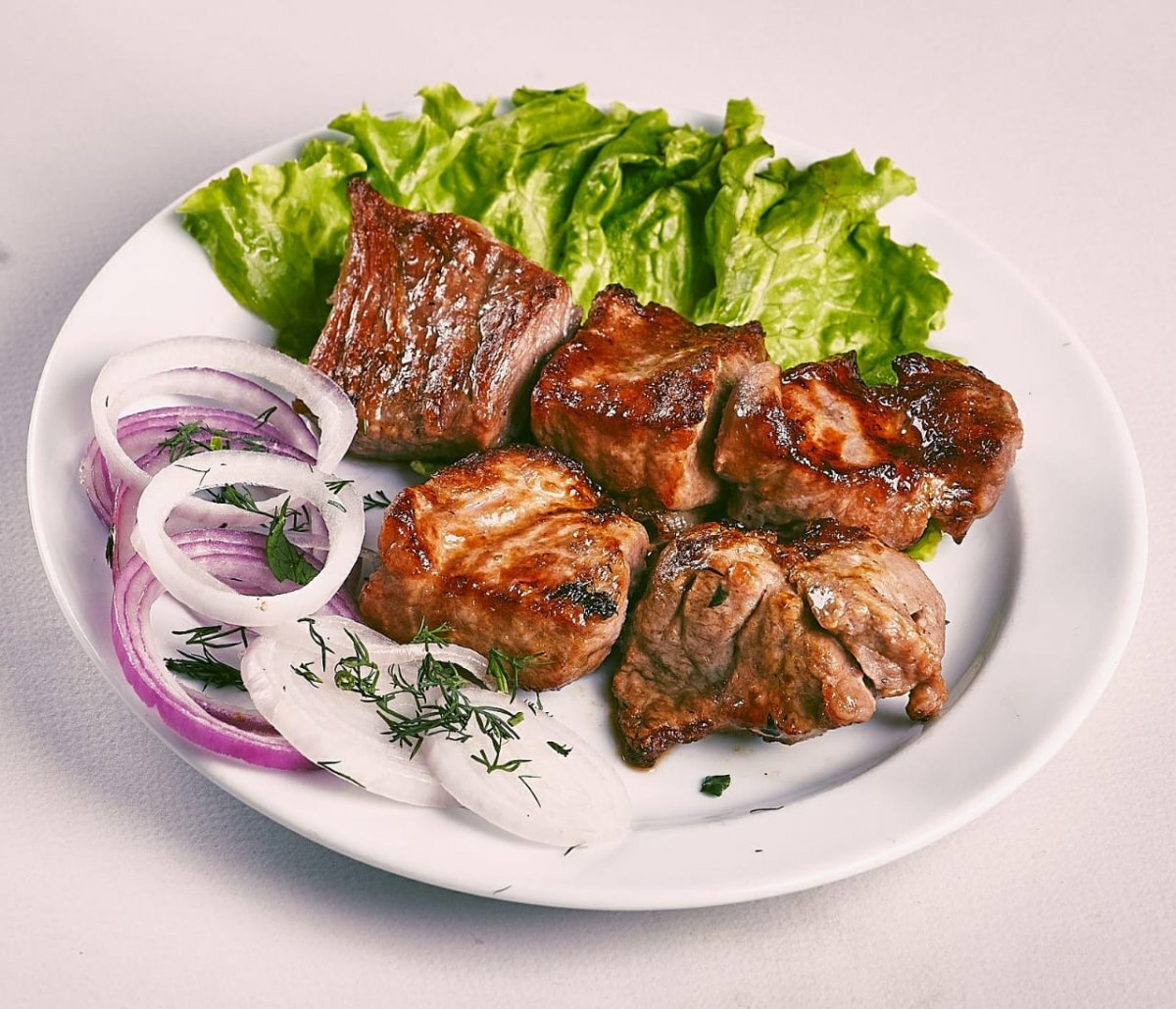 - Подавайте шашлык горячим с гарниром из овощей, салатом и соусом по вашему выбору.