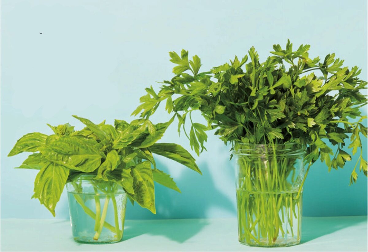 базилик и петрушка, возьмитесь за стебли и погрузите верхушки в холодную воду. Встряхните, чтобы высушить. После мытья и сушки базилик следует оставить в открытом виде и хранить в банке