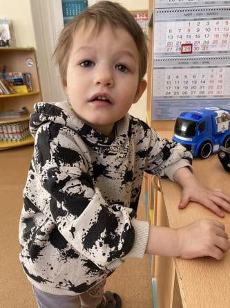 Демьян ласковый и улыбчивый мальчик, хорошо идет на контакт со взрослыми и детьми, интересуется простыми конструктивными играми, пирамидками. Любит музыкальные игрушки и рисовать. Уровень развития на 10 месяцев: берет игрушки двумя руками, стучит кубик о кубик, сидит, встаёт у барьера, ходит вдоль опоры, в речи лепет, ест с помощью взрослого, повторяет за взрослым простые движения. Дошкольные образовательные учреждения не посещает, занятия проходят на базе детского дома.