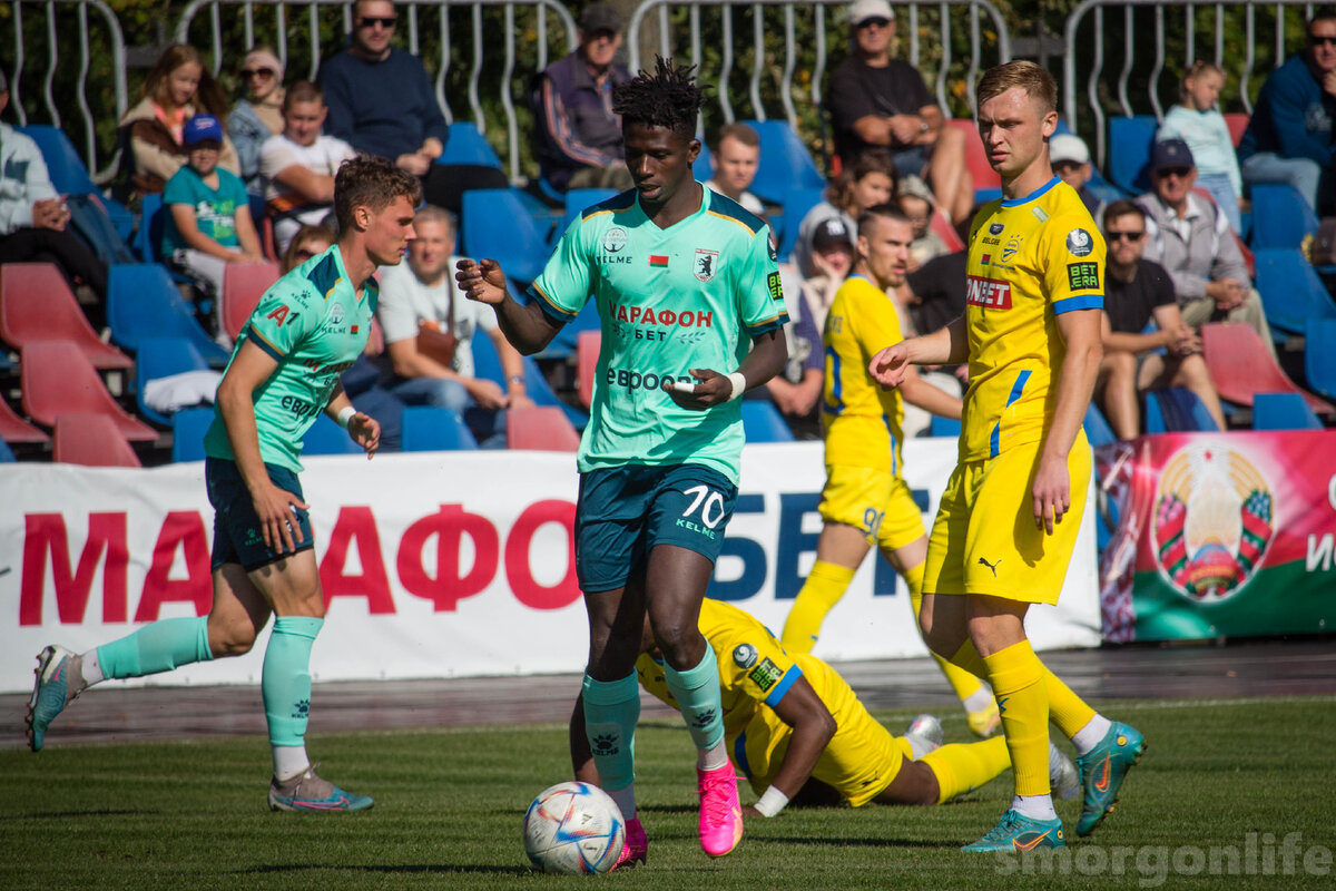 Футболисты "Сморгони" дома проиграли борисовскому БАТЭ в матче 21-го тура чемпионата Беларуси в высшей лиге. Матч, который состоялся в Сморгони на стадионе «Юность» в воскресенье, 17 сентября, завершился победой борисовского БАТЭ со счетом 2:1. Счет в матче открыл Кристиан Интсоен, поразивший ворота голкипера БАТЭ Андрея Кудровца на 18-й минуте. Борисовчане сумели сравнять цифры на табло благодаря забитому голу нападающего борисовчан Дениса Лаптева на 37-й минуте. Точку в противостоянии двух команд поставил форвард БАТЭ Илья Василевич, огорчивший вратаря «Сморгони» Павла Охремчука на 94-й минуте. В следующем туре ФК "Сморгонь" будет гостить в Новополоцке, где сыграет против местного "Нафтана". Матч запланирован на воскресенье, 24 сентября. Начало в 16:00. Отметим, что в первом круге сильнее были именно футболисты "Сморгони" (1:0). * Информационный блог Сморгонь LIFE предлагает Вашему бизнесу разместить рекламу (афиши, акции, информацию о вакансиях, скидках и прочее) внутри новостной л