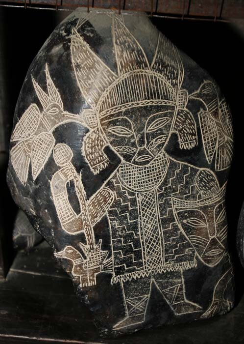 Предыдущую публикацию по данной теме можно прочитать по этой ссылке. Иконографический комплекс камней Ики отличается конкретикой изображаемых сюжетов и высокой динамичностью сцен. Но даже при первом знакомстве с гравированными камнями из коллекции доктора Кабреры бросается в глаза присутствие ряда графических элементов, которые, несомненно, играли в данном комплексе роль символов или даже своего рода идеограмм. Самым распространенным в иконографии камней Ики является символ «листа жизни». Это название весьма условно, тем не менее, оно отражает предположение о назначении данного символа. Как видно на иллюстрациях, лист ланцетовидной формы на коротком стебле можно обнаружить практически на каждом третьем камне. Чаще всего символ «листа жизни» соединен со ртом живого существа, причем, не только человека. «Лист жизни» может сопровождать изображения животных, динозавров, птиц, змей. На некоторых камнях (о них будет сказано позже) «лист жизни» исходит из уст человеческого лица, символизиру
