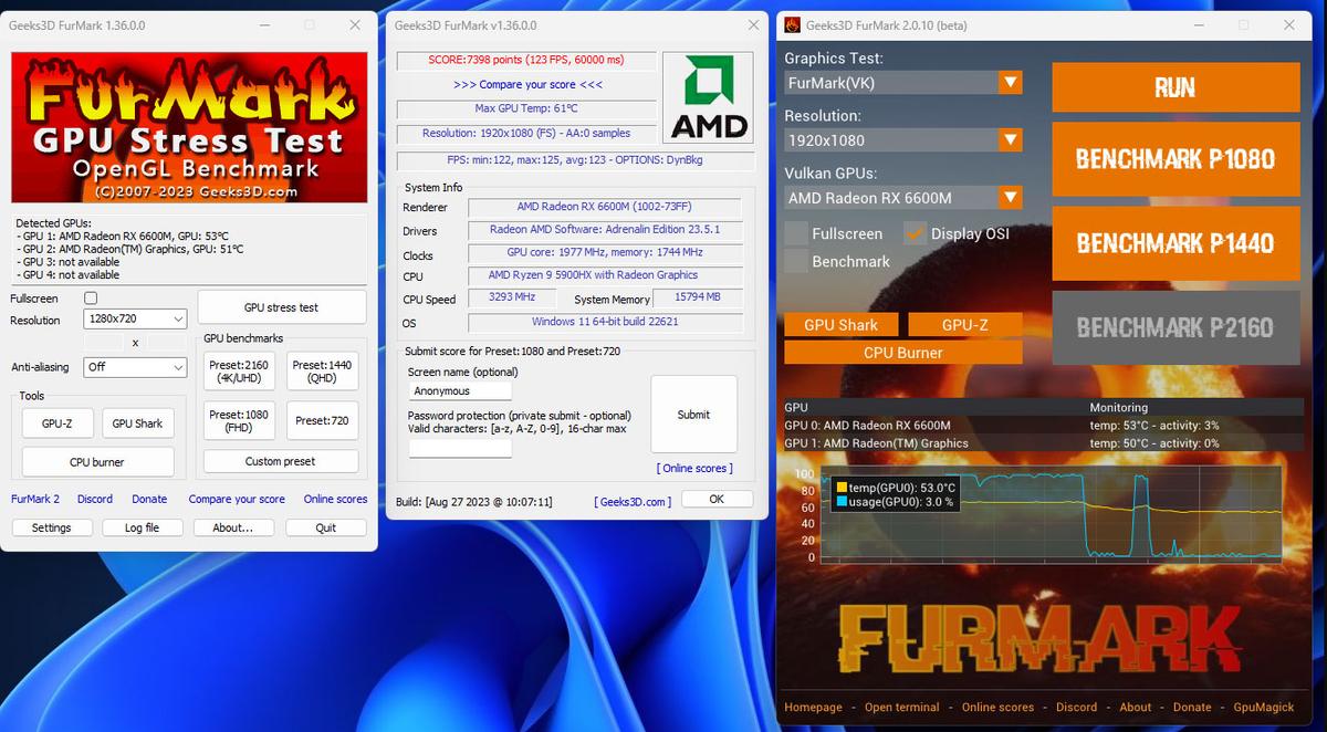 FurMark, популярный инструмент среди энтузиастов, официально описывается как легкий, но интенсивный стресс-тест для графических процессоров. Он также предоставляет результаты тестов для сравнения производительности графических процессоров. Приложение FurMark сейчас очень близко к своему первому серьезному обновлению с 2007 года, и это не просто обычное обновление, а переход с версии 1.X на версию 2.X. Пользователям может быть интересно, что нового в FurMark 2.X. На данный момент нет официальных примечаний к выпуску для сравнения версий. Бета-версия предлагает только журналы изменений из предыдущих бета-версий. Однако исследования портала Tomshardware.com выявили несколько заметных отличий. Если посмотреть на скриншот пользовательского интерфейса выше, то можно увидеть, что новое приложение сильно отличается от своего предшественника. Новая часть обновленного пользовательского интерфейса - это диаграмма температуры/использования графического процессора в реальном времени. Еще одно важно