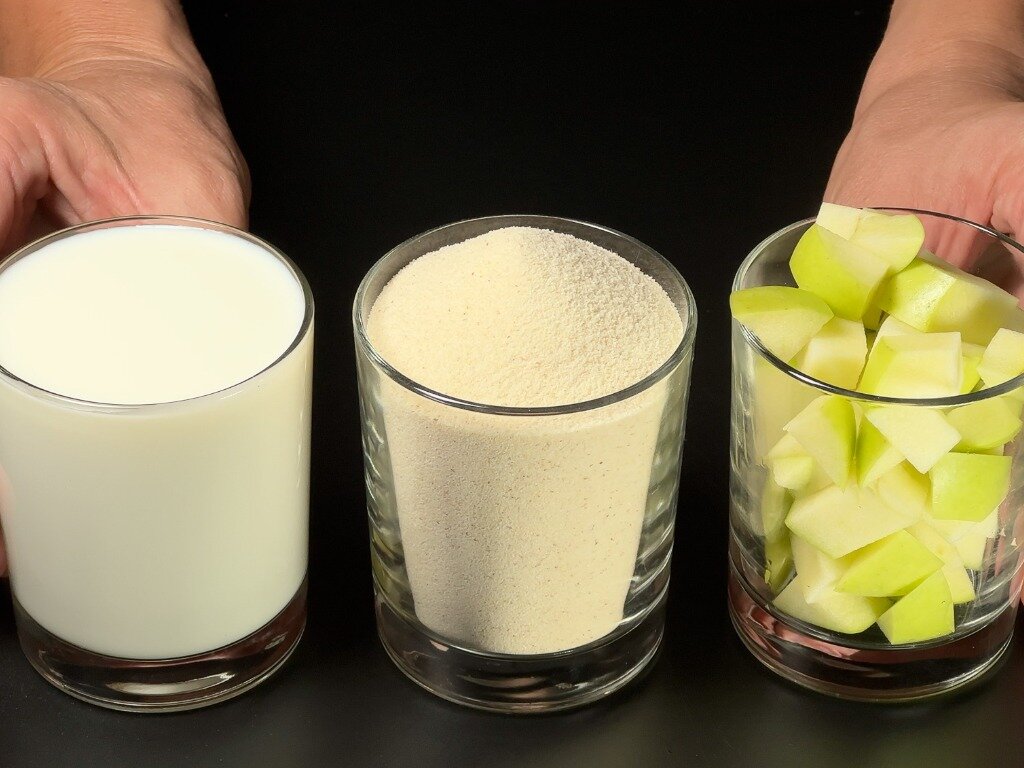 С этим яблочным пирогом вы справитесь, даже если у вас совсем нет опыта. Тесто для него готовится буквально за считанные минуты — надо только соединить все ингредиенты и перемешать. Ингредиенты для пирога «3 стакана» на форму 24 см: Как приготовить пирог «3 стакана», пошаговый рецепт В глубокую миску высыпаю манку, туда же отправляю сахар, муку и корицу. Смешиваю все сухие ингредиенты. Добавляю разрыхлитель и снова хорошенько перемешиваю, чтобы не было никаких комочков. Яблоки очищаю от кожуры и натираю на крупной терке, сердцевины и хвостики выбрасываю. Лучше брать такие плоды, чтобы при натирании они давали много сока. Так пирог лучше пропитается и получится более мягким и сочным. Форму для выпечки выстилаю пергаментом. Высыпаю туда один стакан сухой смеси и слегка потрясываю форму, чтобы смесь полностью закрыла дно. Поверх выкладываю половину натертых яблок и равномерно распределяю. Дальше повторяю слои. Высыпаю второй стакан сухой смеси и разравниваю лопаткой. А сверху выкладываю
