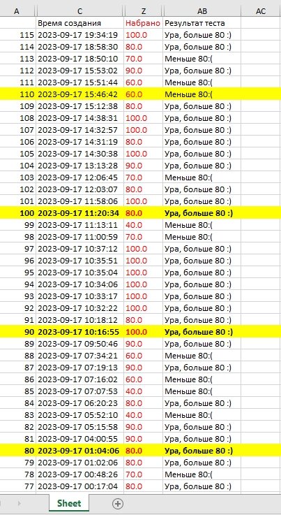 Ниже список результатов за 17 сентября (номера телефонов скрыты).