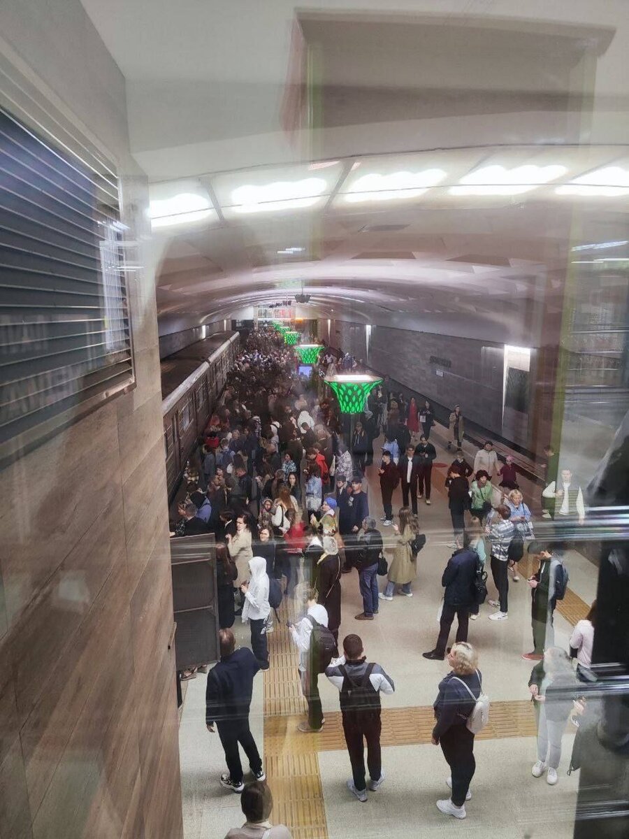Состав остановился на станции метро «Дубравная» и не открывал двери на посадку. Из-за этого на платформе образовалось столпотворение. Кадрами поделились в соцсетях удивленные казанцы.