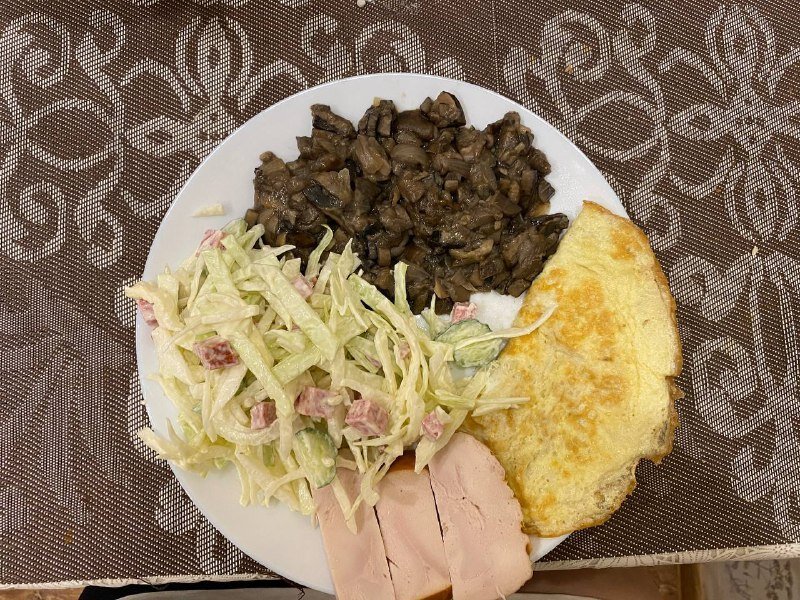 3. Салат: капуста, огурец, лук, колбаса (состав хороший) с майонезом (без сахара);